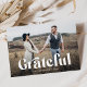 Trendy & modern Thanksgiving photo card featuring your full-bleed horizontal photo with "Grateful" in bold white retro typography. Personalize the minimal Thanksgiving card by adding your name & the year. The unique Thanksgiving card reverses to feature a black modern plaid pattern with a white background.