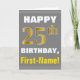 Bold, Gray, Faux Gold 25th Birthday w/ Name Card