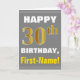 Bold, Gray, Faux Gold 30th Birthday w/ Name Card