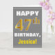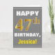 Bold, Gray, Faux Gold 47th Birthday w/ Name Card