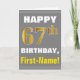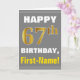 Bold, Gray, Faux Gold 67th Birthday w/ Name Card