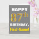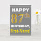 Bold, Gray, Faux Gold 87th Birthday w/ Name Card