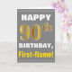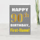 Bold, Gray, Faux Gold 90th Birthday w/ Name Card