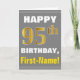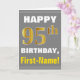 Bold, Gray, Faux Gold 95th Birthday w/ Name Card