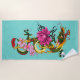 Bold Green Chinese Dragon Lotus Teal Tattoo Beach Towel