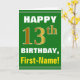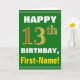 Bold, Green, Faux Gold 13th Birthday w/ Name Card