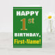 Bold, Green, Faux Gold 1st Birthday w/ Name Card