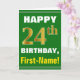 Bold, Green, Faux Gold 24th Birthday w/ Name Card