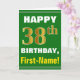 Bold, Green, Faux Gold 38th Birthday w/ Name Card