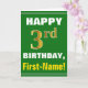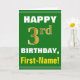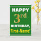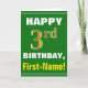 Bold, Green, Faux Gold 3rd Birthday w/ Name Card