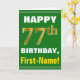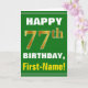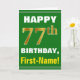 Bold, Green, Faux Gold 77th Birthday w/ Name Card