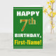 Bold, Green, Faux Gold 7th Birthday w/ Name Card