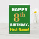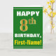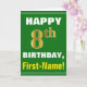 Bold, Green, Faux Gold 8th Birthday w/ Name Card