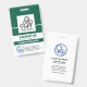 A bold dark green cover is accentuated by well placed white column lines that highlights your badge information. Over at the top is the photo template to place your photo which measures 1,000 x 1,000 pix. Your prestigious name lie in a white column just below the photo. For creative identification, your name is split into two different font sizes ; You may want to consider having dual colors to make your name stand out. In the corresponding column below is your job title. At the base of the badge are the optional blue healthcare logo which you can use, the organization name and contact details.