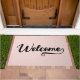 Modern minimalist "Welcome" typography on a large door mat.