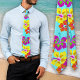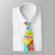Aqua blue floral neck tie with a big, bold print of colorful hibiscus flowers. Illustrated design in colors of yellow, orange and pink make the perfect accessory for tropical wedding groom and groomsmen.