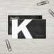 A single, bold initial on rustic, black wood creates an eye-catching graphic on this professional business card template. © 1201AM CREATIVE