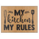 A playful kitchen sign featuring a bold statement with whisk and spatula illustrations. Perfect for kitchen decor, it expresses personality and ownership in a humorous and stylish way.