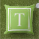 Bold Lime Green White Square Frame Monogram Outdoor Pillow