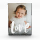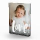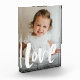 With a playful and modern type treatment, this vertical photo block is an adorable way to share love. The white text love is in a hand-lettered distressed style with white speckles around it. There is also room for customizable text - a name, year, or anything you'd like to add. Makes a great Valentine's gift, Mother's or Father's Day gift or just a keepsake for a great photo. Grandparents are sure to love it too!