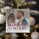 Bold Married & Merry Wedding Photo Newlywed Ceramic Ornament