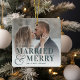 Bold Married & Merry Wedding Photo Newlywed Ceramic Ornament