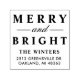 This bold self-inking rubber stamp features "Merry and Bright" in strong serif typography paired with your family name and return address in clean uppercase lettering. Designed to add a festive touch to holiday card envelopes, Christmas mailings, and shipped packages. A striking seasonal tool for families sending greeting cards throughout the holiday season.