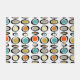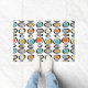 Add a pop of color to your front door with this funky retro door mat. It features the bright and bold colors of turquoise, two shades of orange, gold, and tan, and black.
