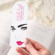 A modern and feminine design featuring a minimalist face illustration with bold lashes, defined brows, and pink lips.