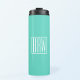 Bold Modern 3 Initials Monogram | White On Aqua Thermal Tumbler