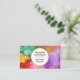 The front of this beautiful business card features bold, multicolored watercolor paint splatters, with the name and job title appearing inside a gold-edged white circle at the center in popular typography, separated by a gold divider. The back of the card features the business name at the top, and three lines of contact information at the bottom, separated in the middle by a gold divider. You can personalize this item for yourself or a loved one by changing all of the text lines.