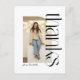 Bold and modern, this one-photo black and white graduation thank you postcard is the perfect way to show your appreciation for graduation gifts and support. Featuring an arched photo on the front, a bold modern "thanks" and custom signature script, this design also has room on the back for a typed message or it can be left blank for the graduate to hand write personalized thank you notes. This graduation thank you postcard design is part of a collection by Lea Delaveris Design where you can find coordinating graduation announcements, graduation party invitations and supplies and more colors and styles.