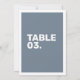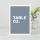 This bold and modern wedding table number card features crisp white typography on a soft steel blue background, making it a standout piece for any contemporary celebration. Designed to coordinate seamlessly with minimalist blue wedding suites, it brings a stylish, elegant touch to every reception table. The clean design with its simple number display and uppercase typographic details embraces a bold minimalist wedding aesthetic. The contemporary slate blue and white palette offers a sophisticated, urban feel that suits both modern city parties and refined gatherings. Perfect for blue reception table meal parties, this simple modern blue table decor is ideal for couples seeking a soft steel blue accent and a striking, stylish look for their event.