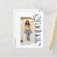 Modern and stylish, this navy blue two-photo graduation announcement and graduation party invitation postcard is perfect for the bold and trendy graduate. Featuring a unique arched photo on the front with bold modern type, this design also has room on the back for a second photo and graduation party invitation text. The text on the back can also be used for a thank you message, future plans and more. This combination graduation announcement and graduation party invitation is perfect for high school or college grads and works well for guys or girls. The front photo is vertical on a white background and the back is horizontal. Find coordinating pieces and more colors in the collection by Lea Delaveris Design.