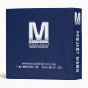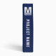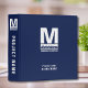 Custom business binder with project title and department features a simple yet professional, modern and bold business monogrammed logo with color block business name and tagline. Customizable typography stretches to align on both sides to create a block on top of another block aesthetic. Professional and elegant navy blue background.