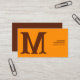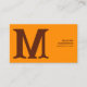 Make a strong, confident statement with this bold and contemporary business card design. Featuring a large monogram letter in deep brown against a striking orange background, this card is designed for modern professionals and entrepreneurs who want to stand out.