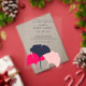 These custom wedding invitations have a bold, modern look with a clean, spare style. They feature simple illustrations of ginkgo leaves in navy blue, bright coral and light pink with your information in coordinating navy blue. The text and graphics are set against a clear background on these transparent acrylic invites.