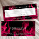 This bold and stylish gift certificate design features a striking hot pink flame background on deep black for a high-impact and energetic look. Clean white typography gives it a sleek, modern feel perfect for beauty salons, spas, tattoo artists, fitness studios, or edgy retail brands. The back includes a spacious, easy-to-fill layout with room for personalized gift details and terms, maintaining a cohesive and polished presentation. This template blends eye-catching design with practical usability, making it ideal for businesses looking to offer memorable and visually impressive gift cards.