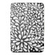 Flowers and swirling white petals against a bold black background. Original digital painting. Crisp edges, sharp lines and white dots and swirling petals.