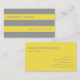 Modern business cards feature bold yellow and gray stripes on the front with your company name and slogan in gray text on the bright yellow stripes. The back features your name, job title/specialty, and contact information in gray text on a yellow background. Replace the text with your own in the sidebar. You don't have to include all of the sample contact info types (like an address if you are web-based) and you can add things which aren't displayed like a social media handle if you want.