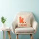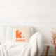 Throw pillow featuring your monogram initial in a big, bold font and your name below. Orange text on a lighter background. Colors are customizable in the design tool.