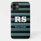 Bold Monogram & Name, Lt. Teal Lines on Black Case-Mate iPhone Case