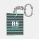 Bold Monogram & Name, Lt. Teal Lines on Dark Grey Keychain