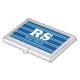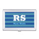 Bold Monogram & Name, Lt Teal Lines on Deep Blue Business Card Case
