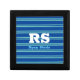 Bold Monogram & Name, Lt Teal Lines on Deep Blue Gift Box