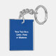 Bold Monogram & name, Lt. Teal Lines on Deep Blue Keychain