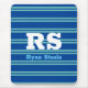 Bold Monogram & Name, Lt. Teal Lines on Deep Blue Mouse Pad