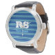 Bold Monogram & Name, Lt. Teal Lines on Deep Blue Watch