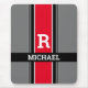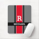 Bold Monogram & Name, Red Gray & Black Stripes Mouse Pad