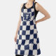 Bold Monogram Navy Cream Checkered Pattern Apron